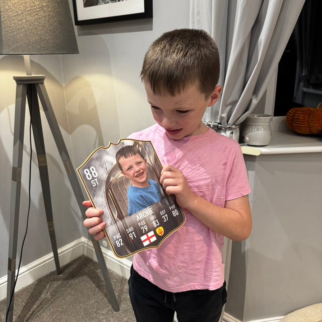 All Star Gifts brings you the ultimate personalised football cards loved by fans worldwide. With our simple online card creator, you can design your very own pro-style football card – complete with your name, photo, club details, and custom skill ratings.