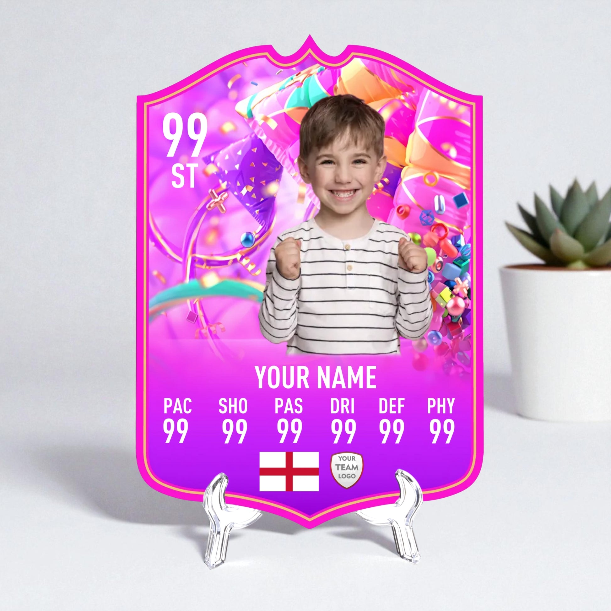 Use our easy online card builder to create your very own FC25 Birthday card in just minutes. Add a name, photo, position, and stats – and we’ll show you a full preview before we go to print. Every card is made with care and backed by our Gold Standard Guarantee, ensuring your gift looks and feels legendary.