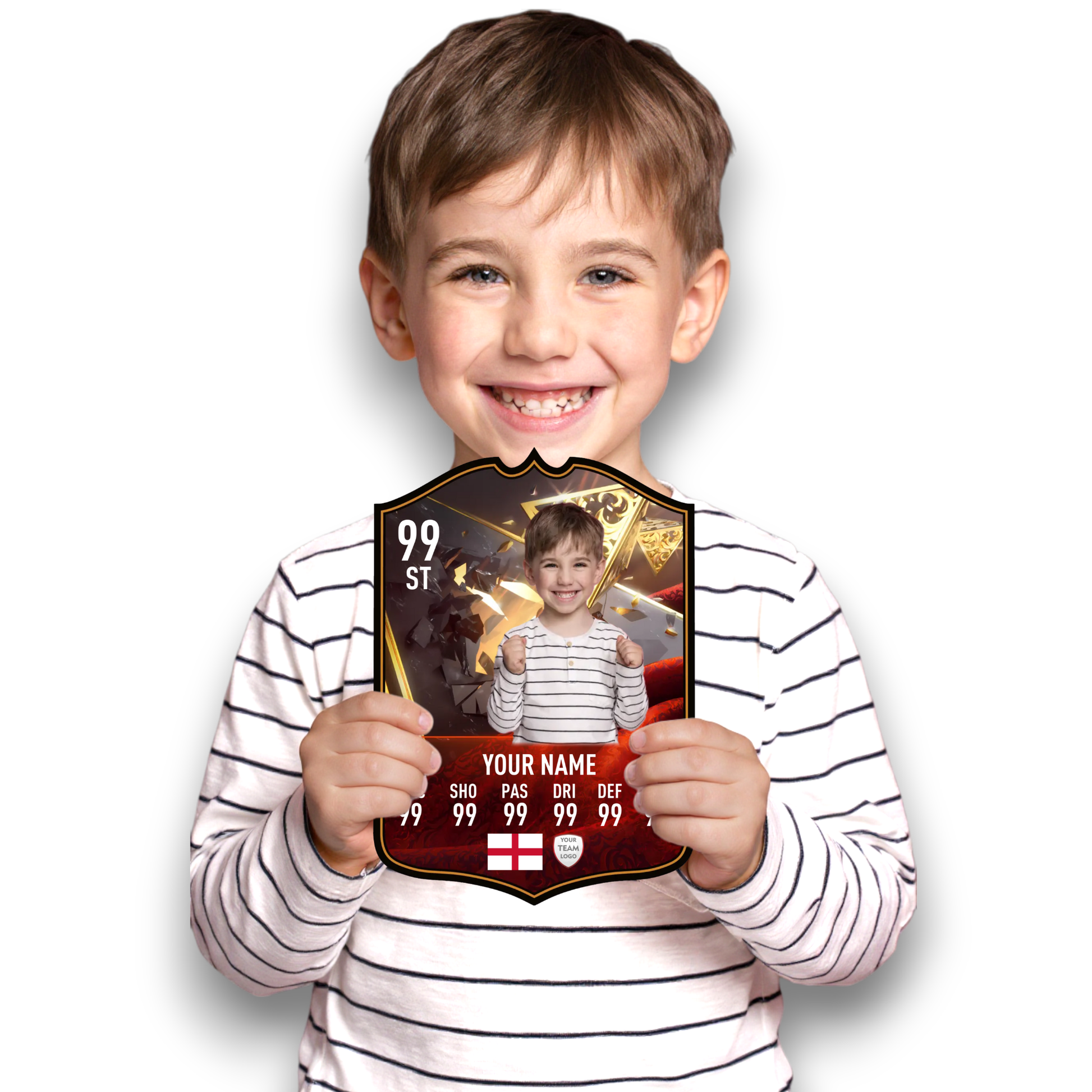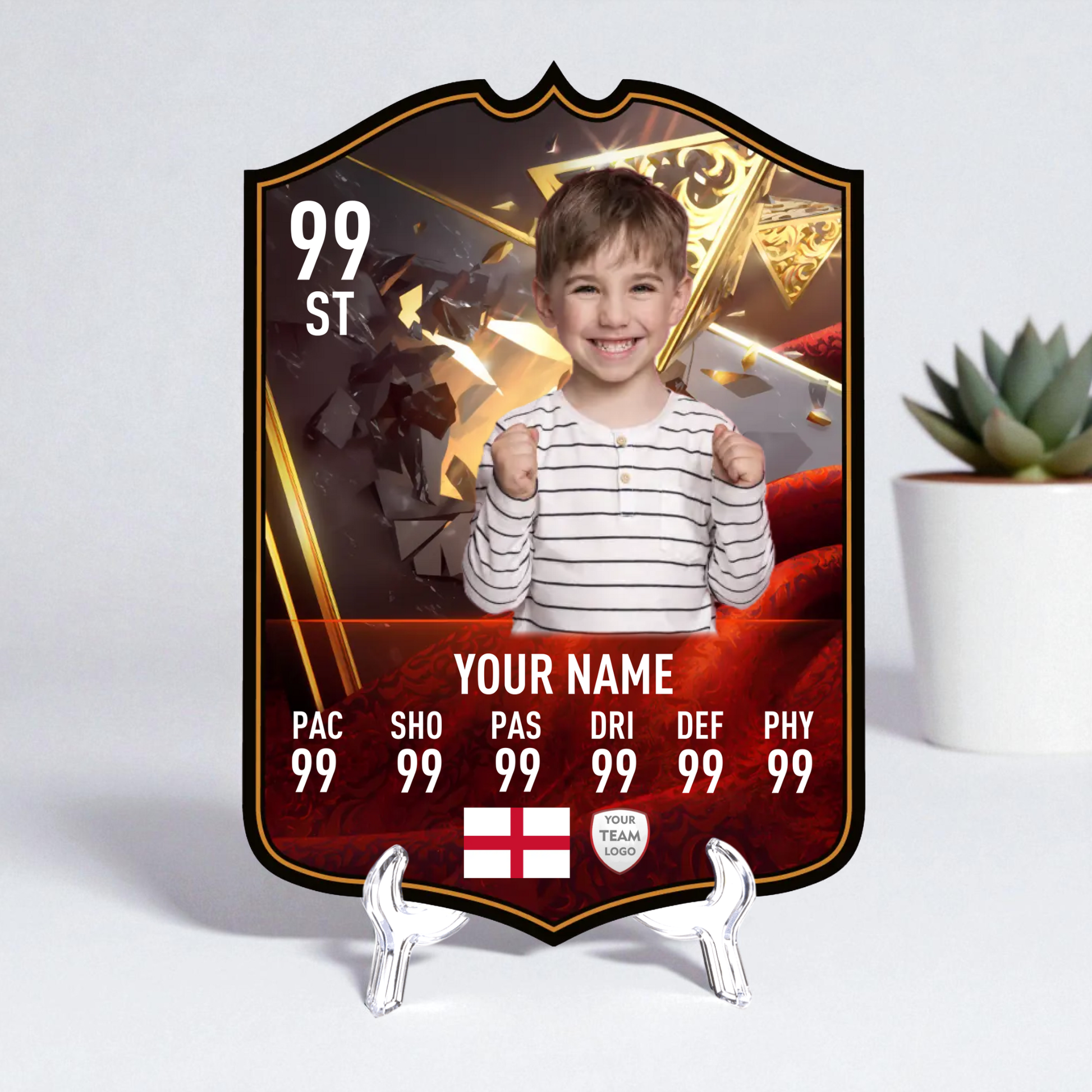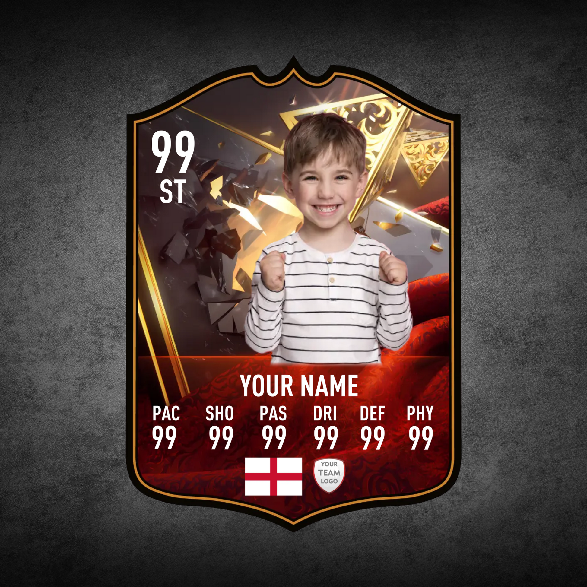 Create your own FC25 Centurions football card in minutes with our easy-to-use online card builder. Upload your photo, add your name, position, club, and custom stats – and preview it live before ordering. Every card is printed to perfection and backed by our All Star Gifts Gold Standard Guarantee for professional quality and lasting brilliance.