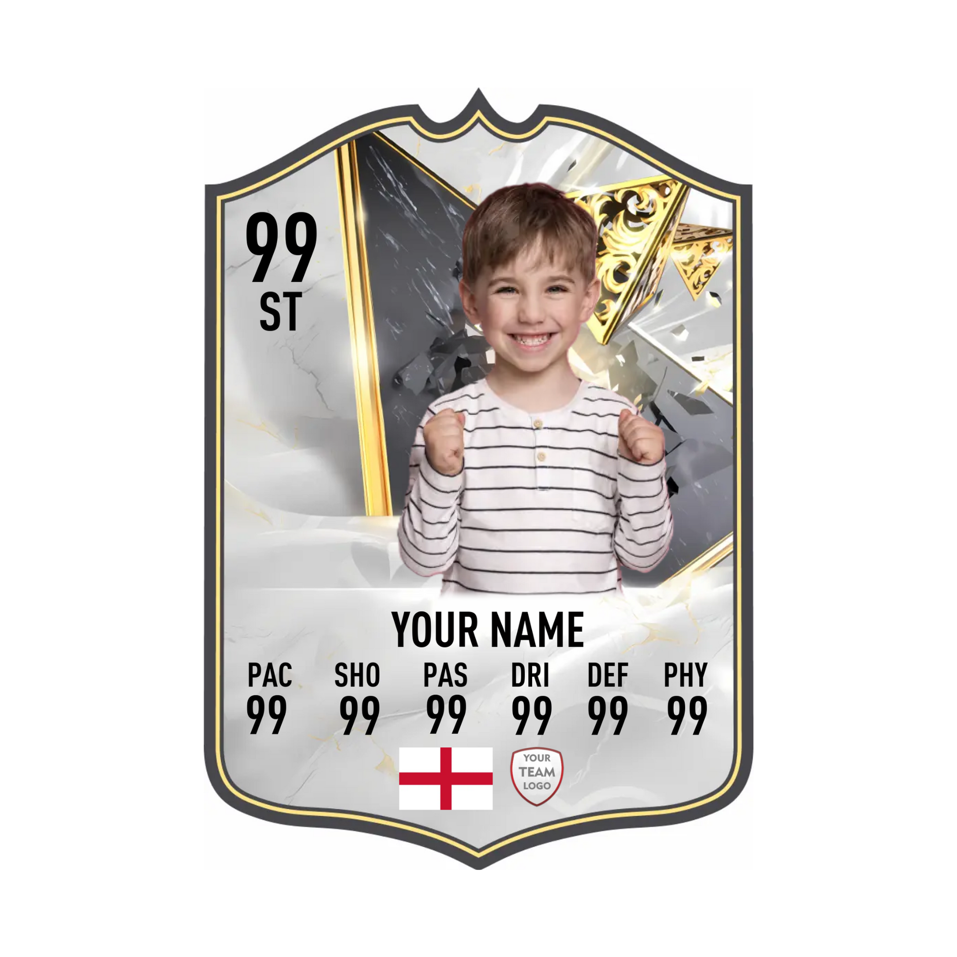 Create your own FC25 Centurions Football's Greatest football card in minutes with our easy-to-use online card builder. Upload your photo, add your name, position, club, and custom stats – and preview it live before ordering. Every card is printed to perfection and backed by our All Star Gifts Gold Standard Guarantee for professional quality and lasting brilliance.