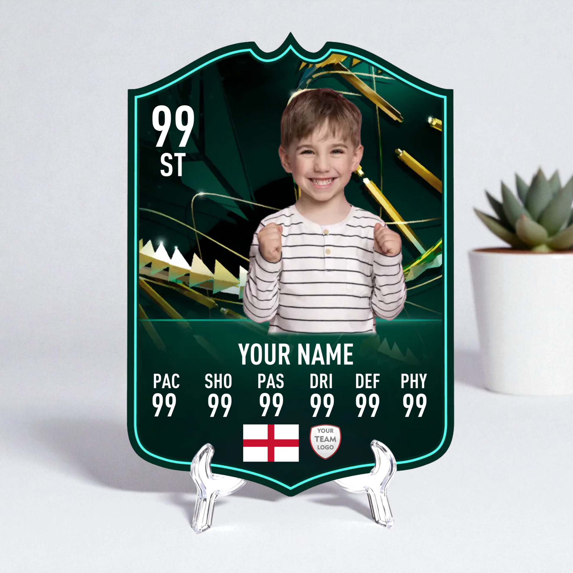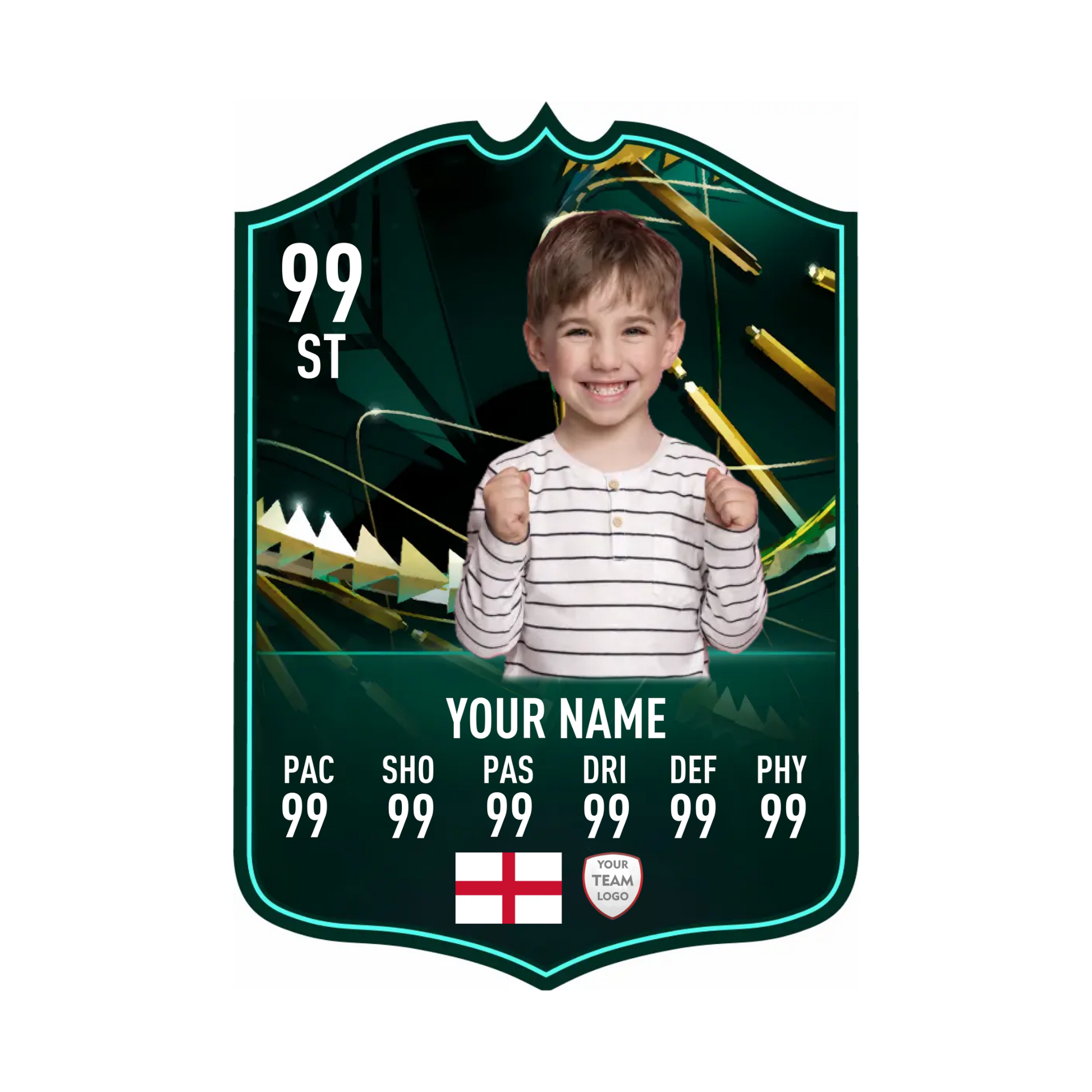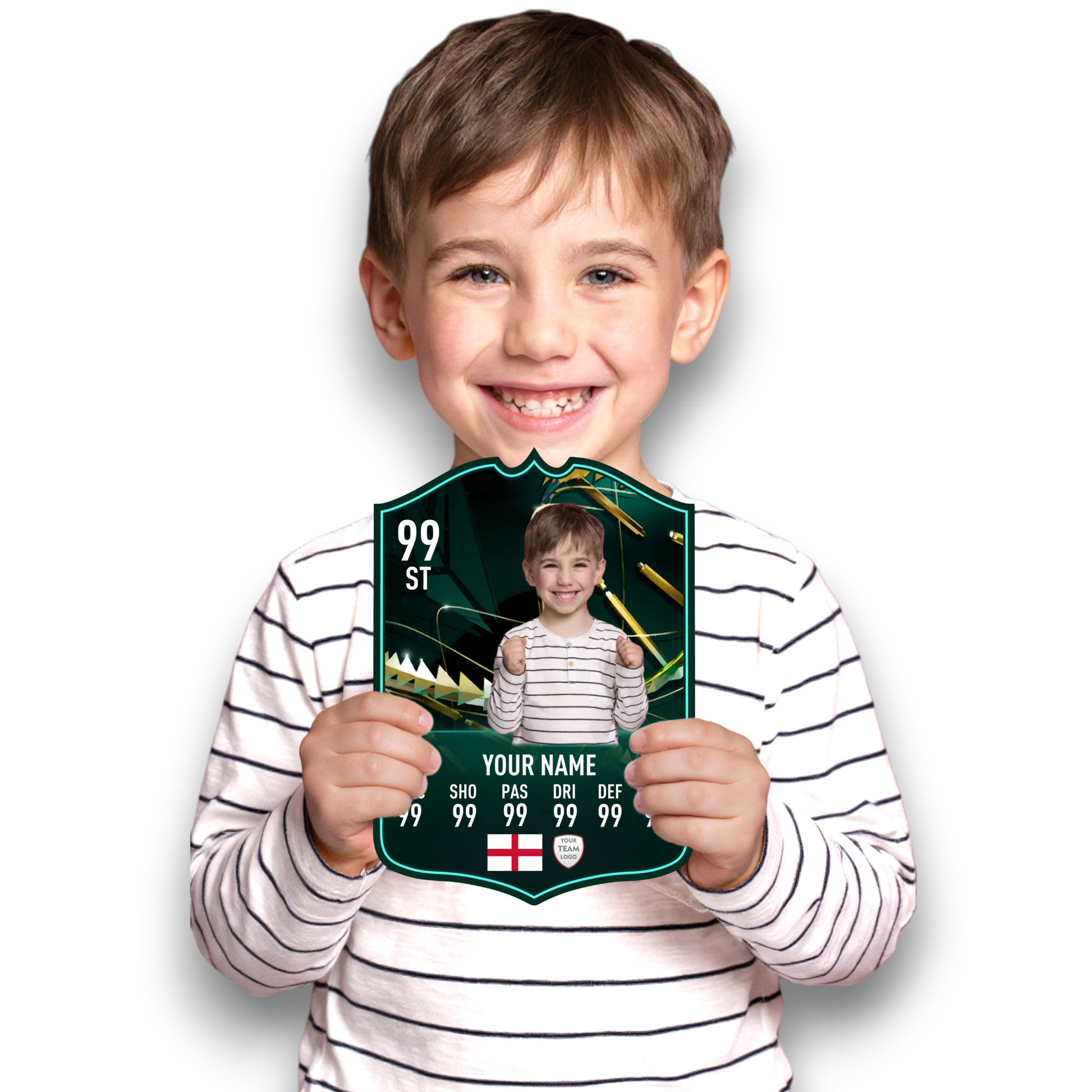Create your own FC25 Evolutions III football card in minutes with our easy-to-use online card builder. Upload your photo, add your name, position, club, and custom stats – and preview it live before ordering. Every card is printed to perfection and backed by our All Star Gifts Gold Standard Guarantee for professional quality and lasting brilliance.
