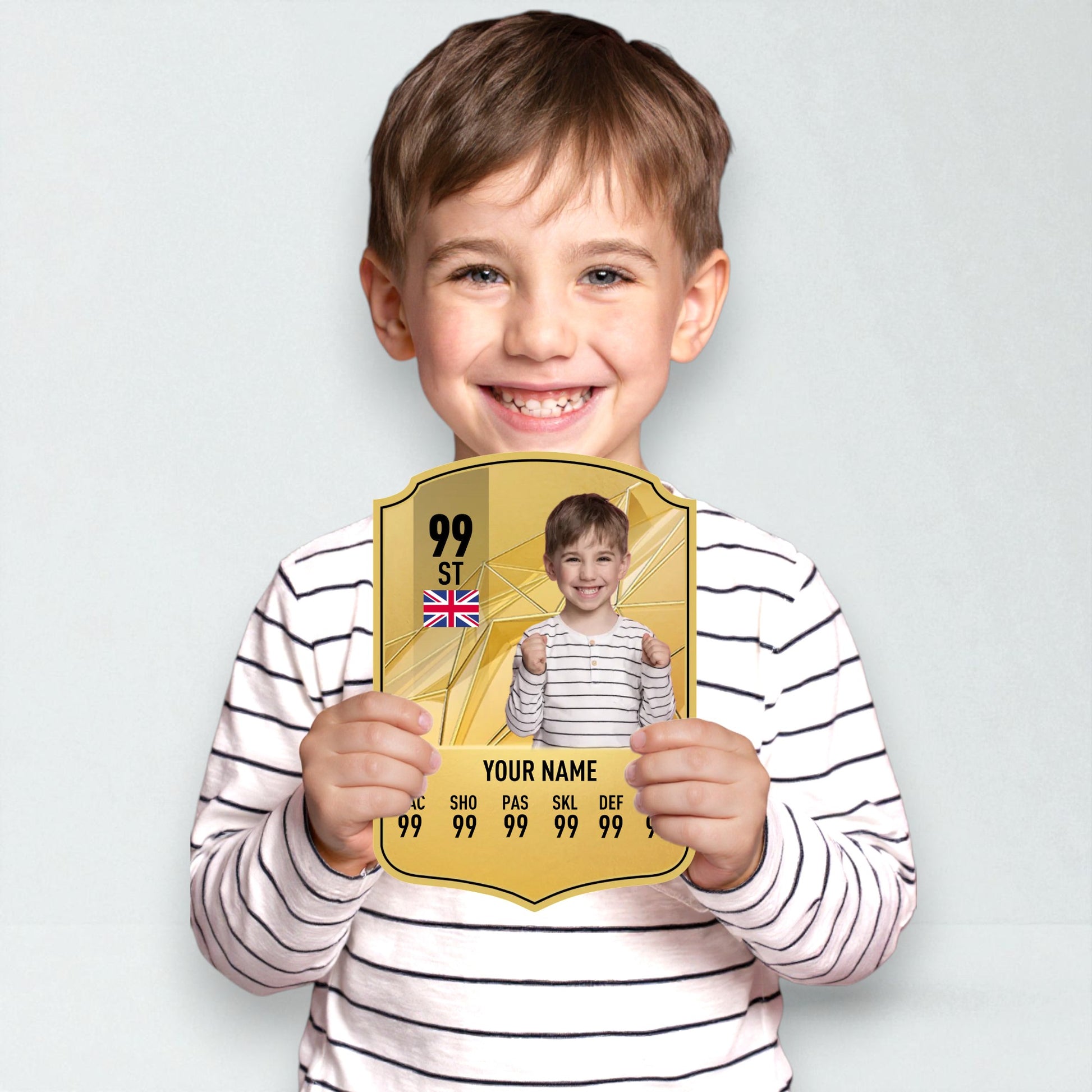 Use our easy online card builder to create your very own Shiny Gold card in just minutes. Add a name, photo, position, and stats – and we’ll show you a full preview before we go to print. Every card is made with care and backed by our Gold Standard Guarantee, ensuring your gift looks and feels legendary.