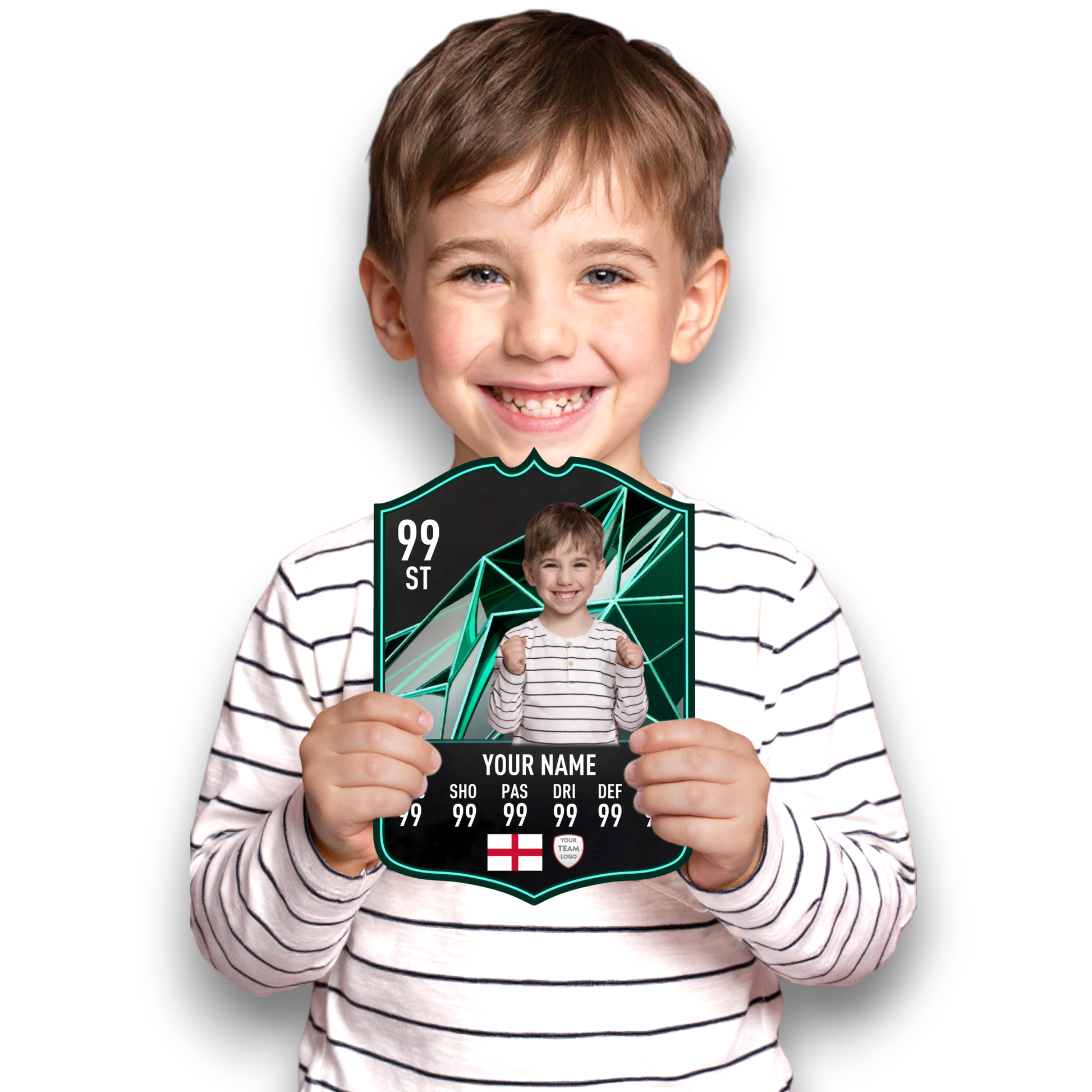 Create your own FC25 Squad Foundations football card in minutes with our easy-to-use online card builder. Upload your photo, add your name, position, club, and custom stats – and preview it live before ordering. Every card is printed to perfection and backed by our All Star Gifts Gold Standard Guarantee for professional quality and lasting brilliance.
