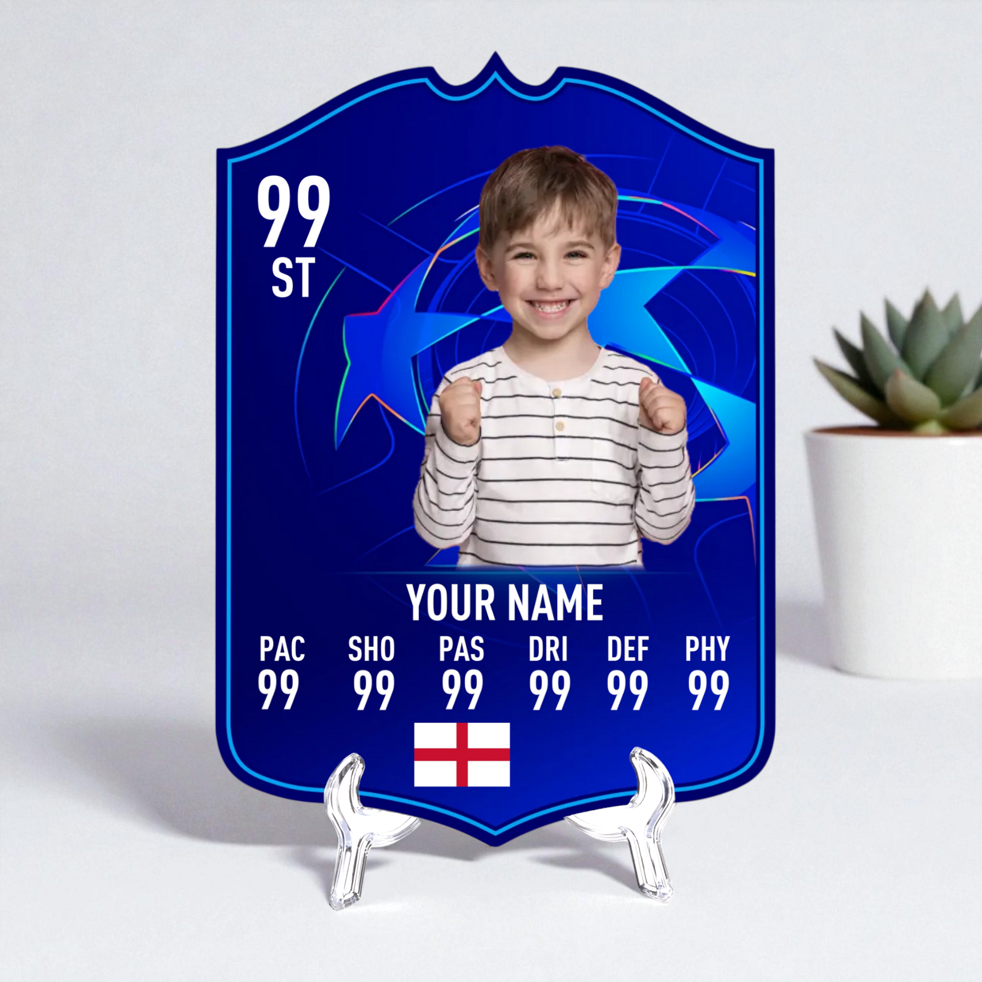 Use our easy online card builder to create your very own Champions League RTTK card in just minutes. Add a name, photo, position, and stats – and we’ll show you a full preview before we go to print. Every card is made with care and backed by our Gold Standard Guarantee, ensuring your gift looks and feels legendary.