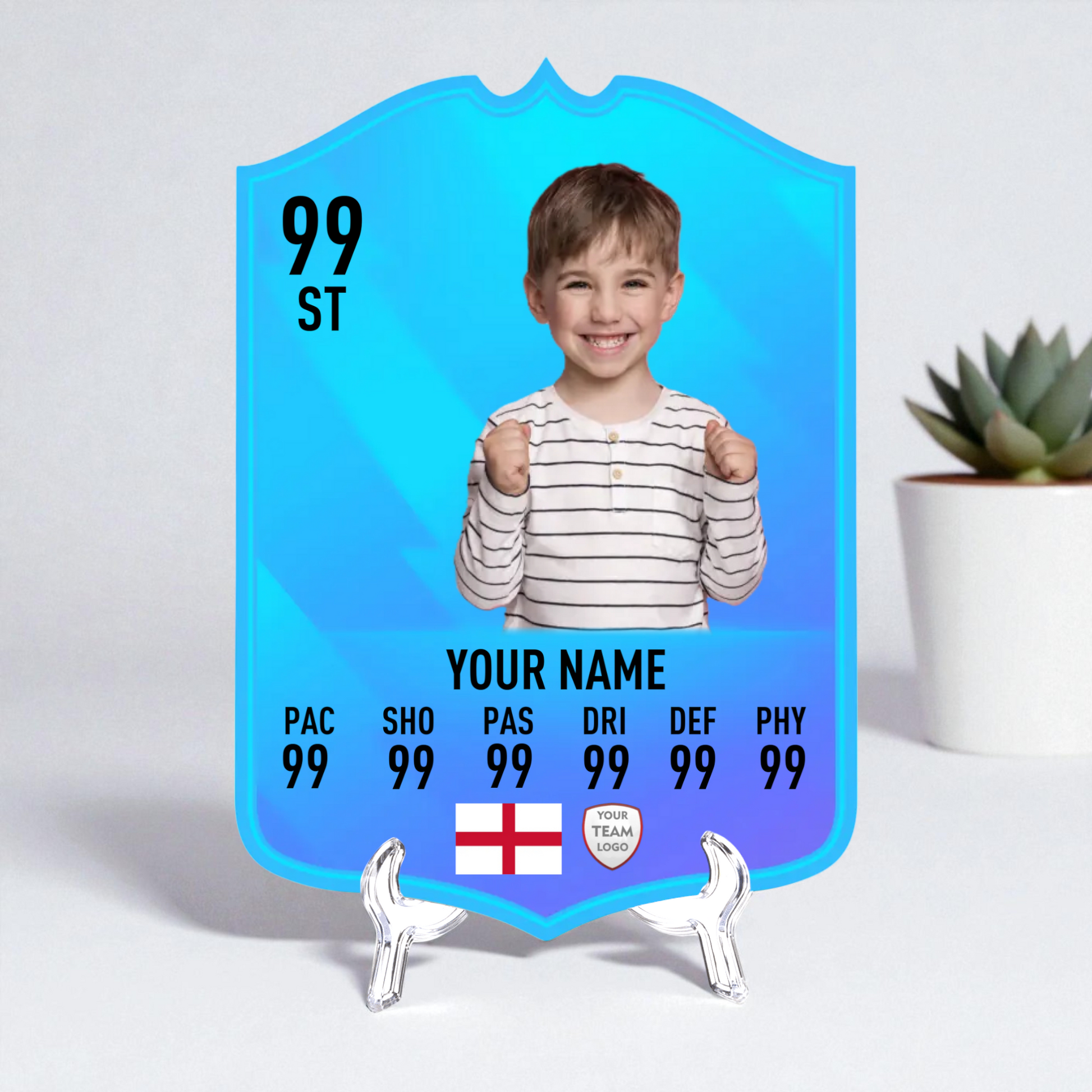 Use our easy online card builder to create your very own English Player of the Month card in just minutes. Add a name, photo, position, and stats – and we’ll show you a full preview before we go to print. Every card is made with care and backed by our Gold Standard Guarantee, ensuring your gift looks and feels legendary.