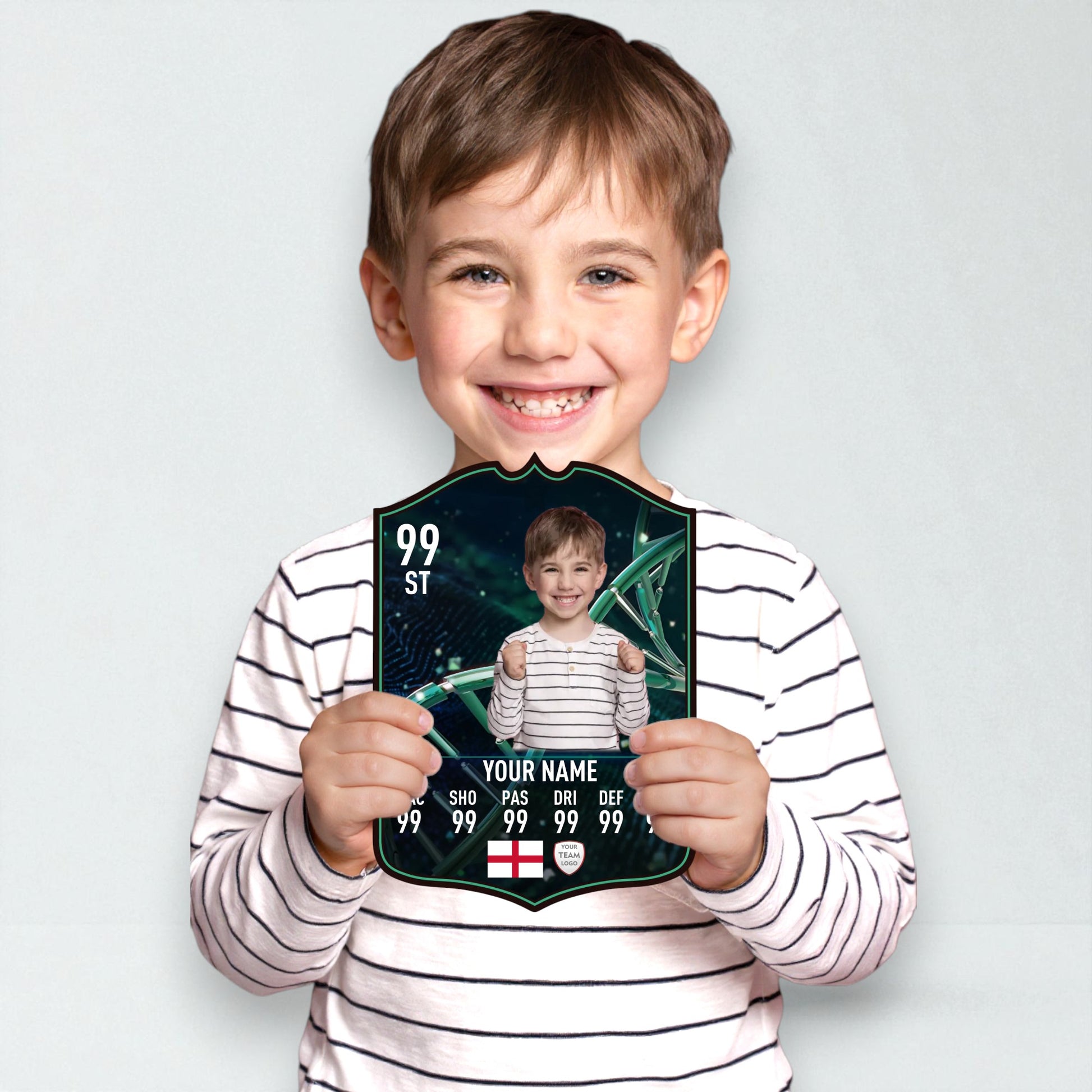Use our easy online card builder to create your very own Evolution-I card in just minutes. Add a name, photo, position, and stats – and we’ll show you a full preview before we go to print. Every card is made with care and backed by our Gold Standard Guarantee, ensuring your gift looks and feels legendary.