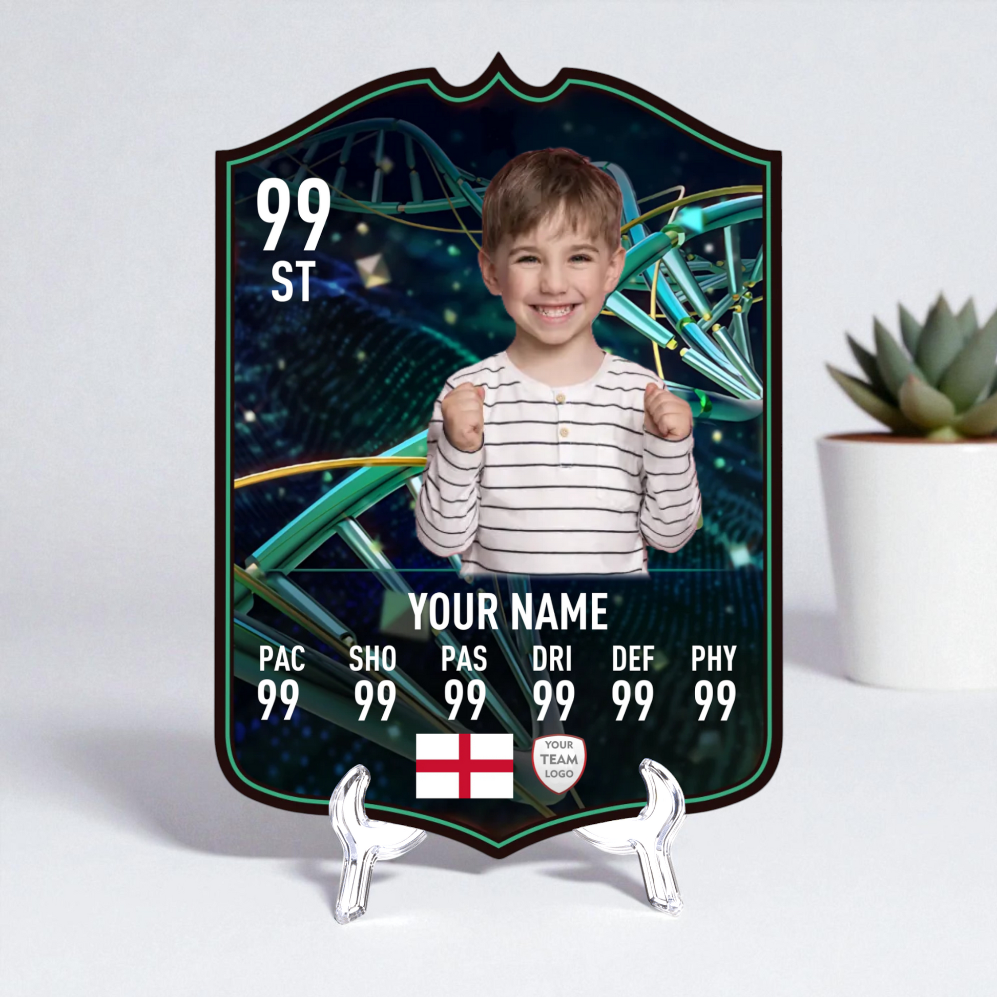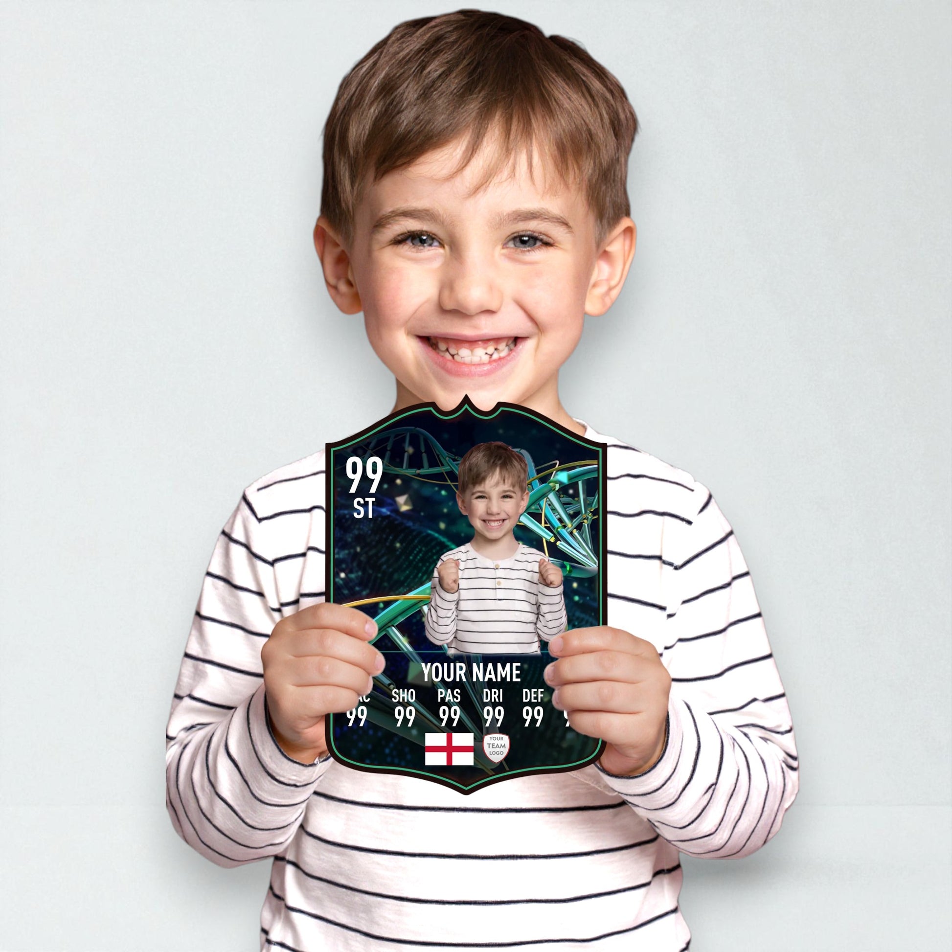 Use our easy online card builder to create your very own Evolution Upgrade card in just minutes. Add a name, photo, position, and stats – and we’ll show you a full preview before we go to print. Every card is made with care and backed by our Gold Standard Guarantee, ensuring your gift looks and feels legendary.