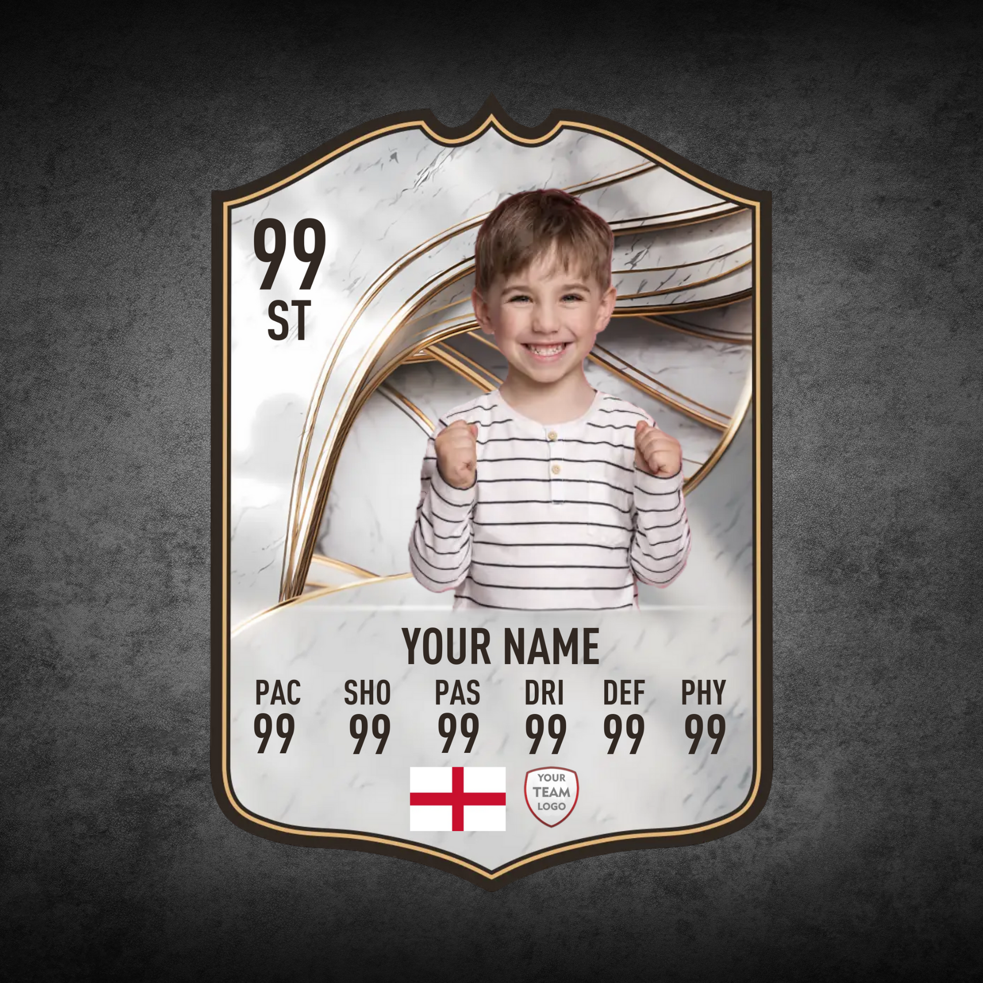 Use our easy online card builder to create your very own Icon card in just minutes. Add a name, photo, position, and stats β and weβll show you a full preview before we go to print. Every card is made with care and backed by our Gold Standard Guarantee, ensuring your gift looks and feels legendary.