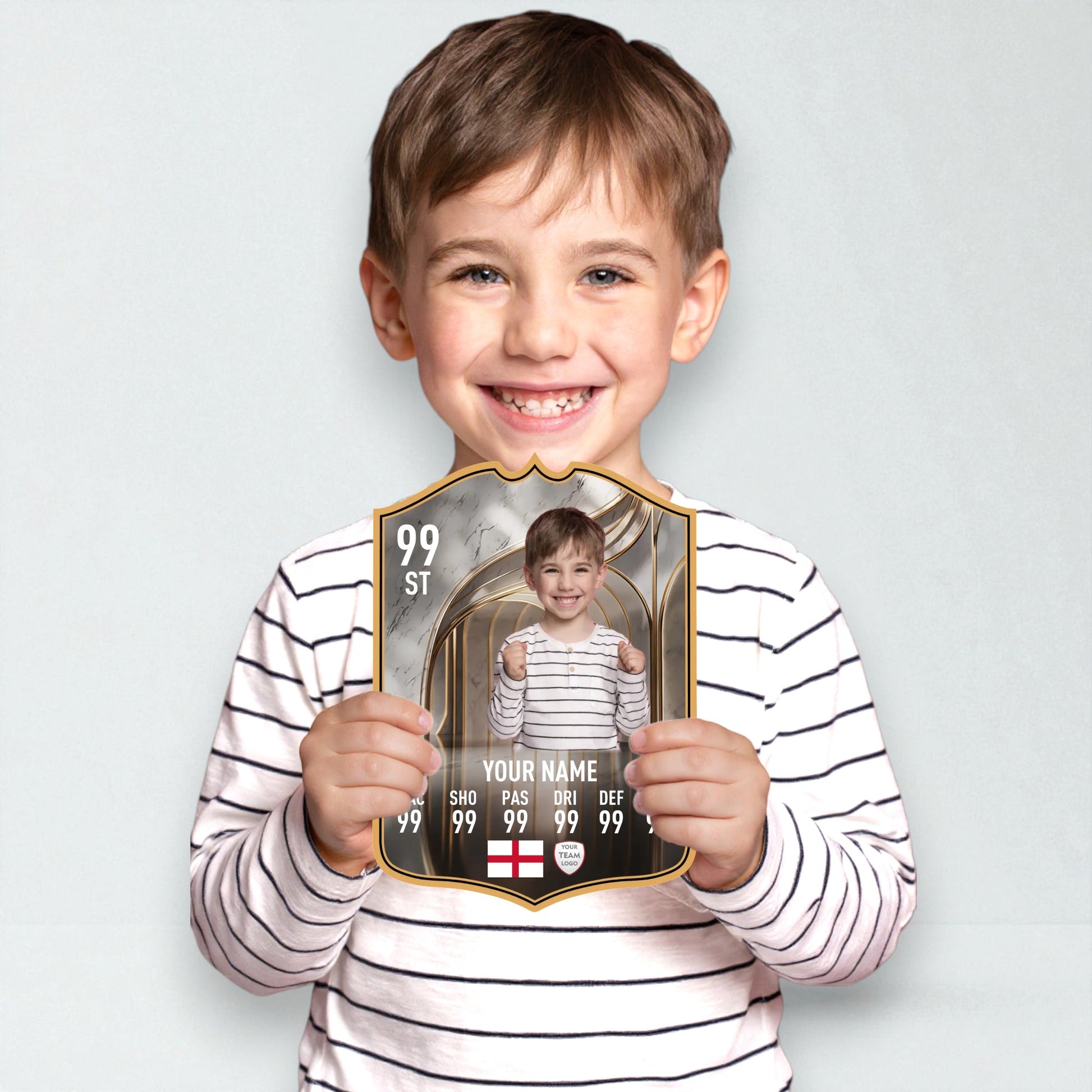 Use our easy online card builder to create your very own Football's Greatest Bonus card in just minutes. Add a name, photo, position, and stats – and we’ll show you a full preview before we go to print. Every card is made with care and backed by our Gold Standard Guarantee, ensuring your gift looks and feels legendary.
